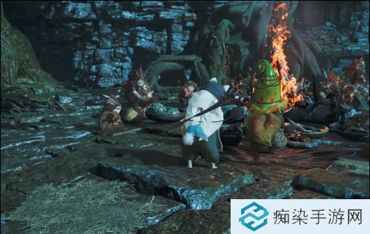 例如作为玩家伙伴的艾露猫,在不同场景下会与当地的环境和生物进行全然不同的互动。比如在森狸人之家里,艾露猫会参与它们的神秘仪式,到达风音村后,又会与鹭鹰龙幼崽嬉戏打闹。