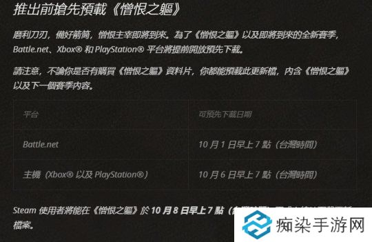 目前预购该DLC的玩家已经在暴雪战网预载《憎恨之躯》,Steam玩家需要等到10月8日正式发售时才能下载。