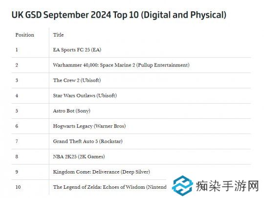 2024年9月英国销量榜 《EA Sports FC25》登顶
