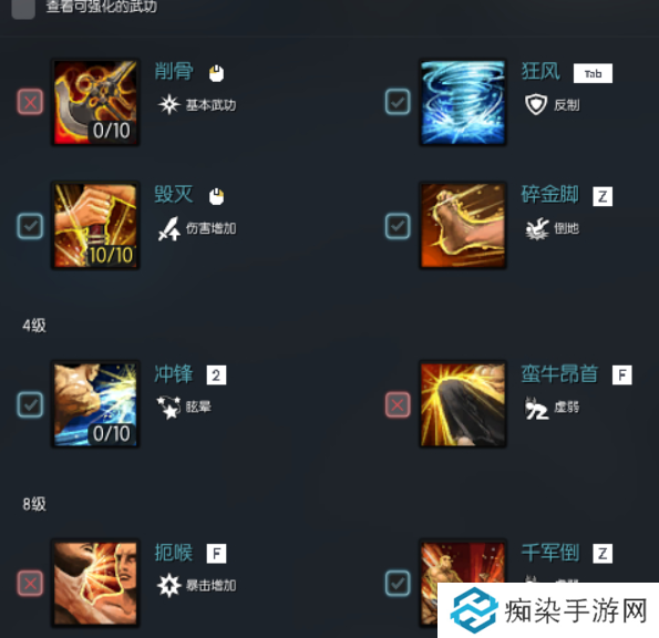 防御技能:在战斗中,平时优先选择将防御技能点至400%防御减伤状态。一旦有机会,就果断使用控制技能控制对手。同时,要时刻警惕对手使用反击导致自己陷入虚弱状态。所以,在控制住对手后,切勿站在原地持续输出,应立即开启愤怒状态,并接上霸王击鼎连招,继续对对手进行控制,确保战斗节奏始终掌握在自己手中。