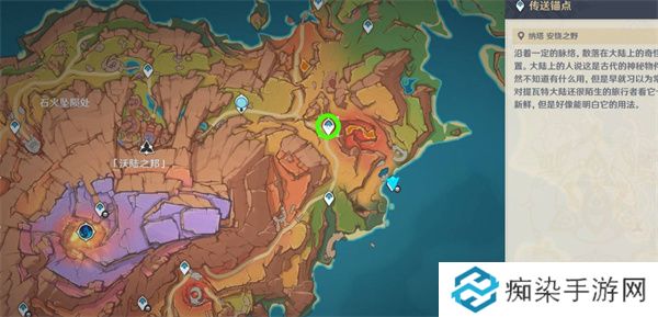 1、传送到沃陆之邦七天神像右侧的地上传送锚点。
