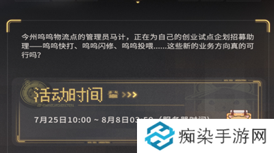 活动期间,漂泊者每天可通过完成<呜呜企划>任务,获得活动道具【呜呜邮币】。