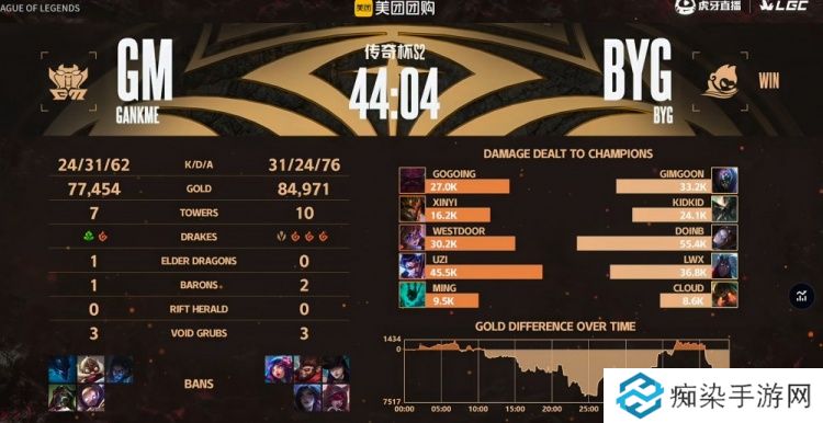 【32:50】河道交锋,Uzi薇恩单人绕后,Doinb发条空大,Uzi薇恩配合队友直接砍下双杀,Gogoing奥恩追击头槌无限命中!GM打出2换5团灭BYG!GM拿下大龙,Doinb发条想大招试一下未果自己吃到Ming锤石钩子也白给了!BYG只能拿下听牌龙!双方经济平了!