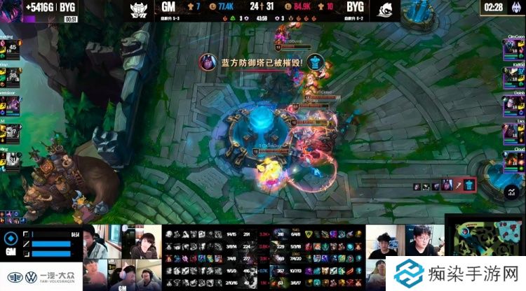 【8:30】GM再次下路四越二,这次Kid斯卡纳还是支援到位,不过GM还抗塔还是强杀掉了BYG下路组,西门的阿萝拉被换掉!