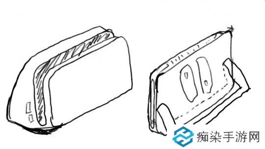 从图中可以看到,Switch2底座采用圆润的后部设计,摒弃了方形风格,看起来更大更厚。这种加厚设计似乎足以容纳主动冷却系统,或旋转的输入/输出面板,而这些都是任天堂近期申请专利的内容。至于位于掌机的可拉出式支架,草图显示它类似于从机身底部突出的一个把手。