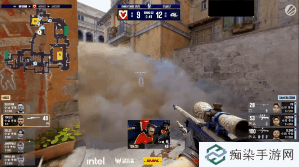 上半场由GL作进攻方。手枪局,双方在黄墙展开乱战,最后由新人xelex 1v1对阵ZTR,ZTR守包枪法失误,xelex回头一枪带走。第二局,GL强起,利用枪法在A点逆转劣势,完成翻盘。第三局则显得有点“热血上头”,两人冲烟被蕉道摆阵的防守方接住,MOUZ成功回敬一个翻盘!同时,吸取经验的MOUZ没有给对手再一次强起翻盘的机会,比分很快来到4-1。第六局,MOUZ反清蕉道取得首杀,GL调转枪头攻向A点,在PR单人成功破点后,GL顺利入驻包点,成功拿分。MOUZ防守节奏被打乱,GL顺势扳平比分。第九局,在高压下,xertioN用雷带走残血对手,封烟后十秒强拆雷包,顺利再拿一分。GL不甘示弱,继续以枪法说话,强势打进A点,成功追回比分。最终上半场比分锁定为6-6,双方战平。