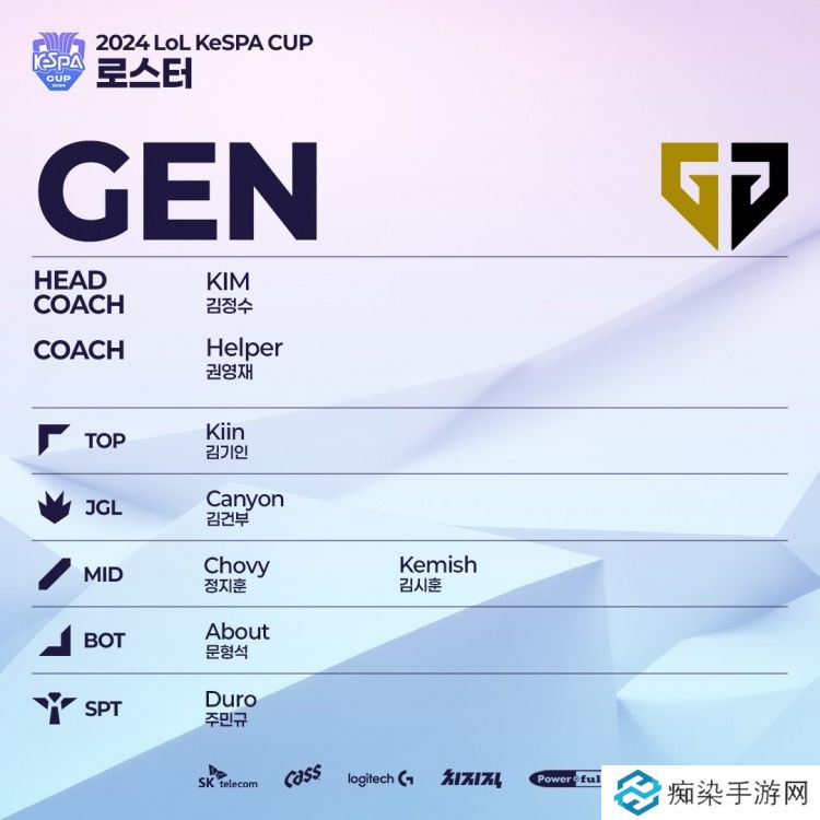 直播吧11月29日讯 KeSPA杯官方公布了将于11月30日开打的KeSPA杯各队大名单,GEN除AD位置外其余主力均参赛,T1方面Oner和Gumayusi出现在大名单内。HLE方面Zeka、Viper、Delight三名主力参赛。
