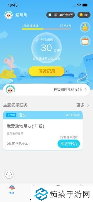 悦读——阅读记录、主题阅读任务、阅读活动挑战主入口。