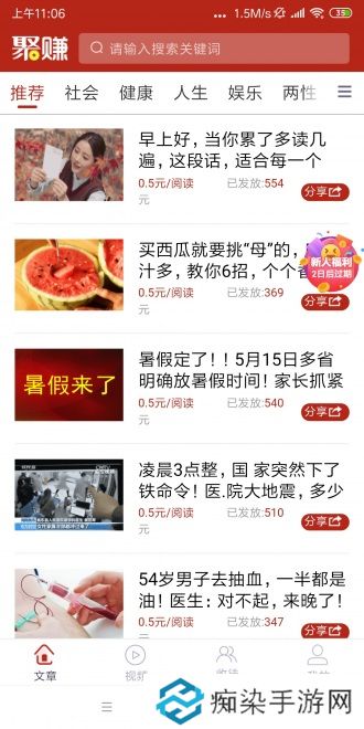 聚转资讯赚钱版赚钱攻略1、转发文章赚钱:只要每天动动手指挑选一些文章转发到朋友圈、微信群,朋友点进去阅读就有钱,普通文章每次被好友阅读可获得5毛收益,被好友阅读次数越多,收益越多!