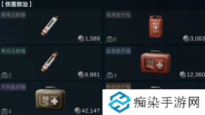 医疗物资:包括回复血量的道具、止血带和止疼药,以应对骨折、出血等负面状态。