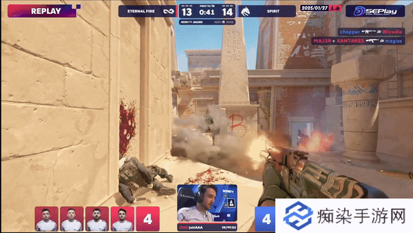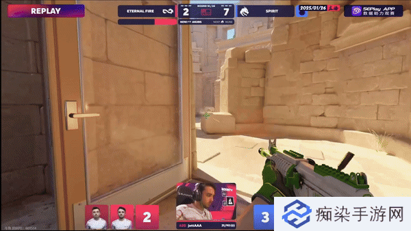 次回合Spirit强起失败。来到下半场第一个长枪局,donk先外场混烟拿到击杀,土匪随后上三楼配合正门夹A,放下雷包后二打二,sh1ro和zont1x双人配合拿下残局,比分来到11-5。第十八回合,暴露进攻意图的土匪只得进攻A区,zont1x回防打掉Wicadia,sh1ro也偷到jottAAA背身,只剩MAJ3R独木难支送出赛点。最终局,Eternal Fire进攻铁门被donk和magixx配合瓦解,chopper从三楼赶来也及时补防。Spirit以13-6比分拿下自己选图。