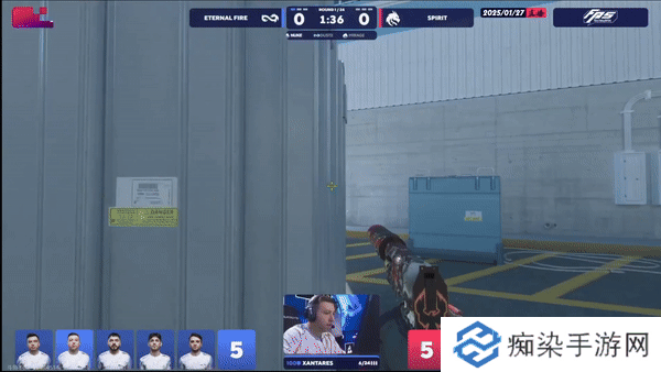 攻防转换。永恒之火从铁板进攻B区,包点CT没能抗住攻势,绕后的XANTARES也偷到一个背身,下半场手枪局Eternal Fire拿下。