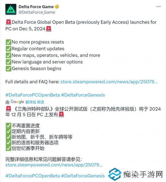 今天有一个好消息想要分享给大家,由于游戏最新版本开发情况乐观,所以为了能让大家更早的感受到内容更丰富、体验更好的Delta Force。我们决定取消Early Access阶段,在12月5日全面开启PC全球不限号不删档Open Beta!