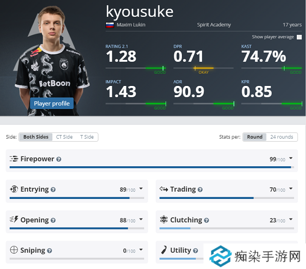 2024年TOP 20选手预测明日之星时,有六人预测了kyousuke。这位年轻的步枪手在过去的三个月的火力值达到了99,远高于他的队友。如果kyousuke继续发挥良好,那么他进入一线战队将只是时间问题。