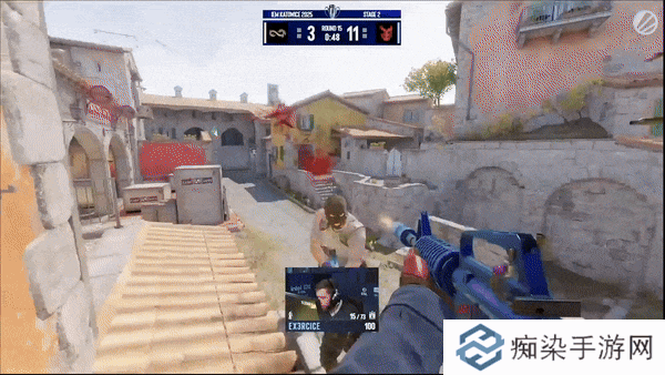 Eternal Fire先做进攻方。手枪局永恒之火抢A大失败转二从A小发难,Ex3rcice绕后打掉一个背身,而A小土匪全部被接完,手枪局3DMAX拿下。