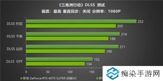 在1080P分辨率下,影驰 GeForce RTX 4060 金属大师帧数表现极为出色。关闭 DLSS时,帧数也能达到134 FPS。在开启DLSS后,值得瞩目的是在性能模式下,帧数显著提升至205FPS,这也证实DLSS 技术的强悍,特别是在低延迟和高响应需求的场景中,能够显著提升游戏性能。影驰 GeForce RTX 4070 SUPER 星曜OC的实力自然不在话下,凭借自身性能性能加持,帧数即可超过150FPS。借助DLSS技术加持后,在品质模式和平衡模式下的帧数均上涨至超过210FPS,性能模式下更是达到了252FPS的高分。整体表现优异,非常适合高帧率游戏体验。