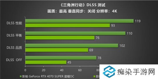 4K分辨率对硬件要求极高。通过数据可得知,影驰 GeForce RTX 4060 金属大师在此分辨率下的表现不足以满足高帧率需求。但借助DLSS技术加持,该卡在性能模式下也能提供较好的游戏体验,达到93FPS的分数。影驰 GeForce RTX 4070 SUPER 星曜OC在4K分辨率下更具竞争力,自身性能输出可实现近80FPS。而在DLSS 性能模式下,帧数直接上涨151.8%。该型号显卡性能优势更为明显,这表明其在高分辨率游戏中具有更强的处理能力。