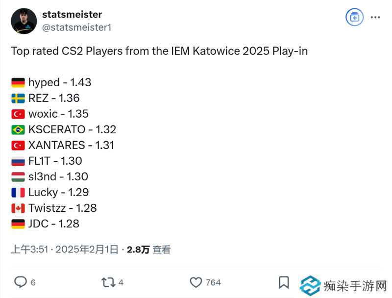 数据统计:hyped入围赛rating最高,Twistzz指挥不损战力