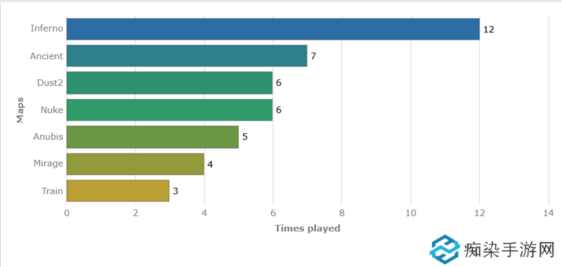 本次赛事Inferno出场率最高,达到12次,Ancient和Dust2、Nuke也颇受欢迎。亮相最少的是Train,仅有3次。