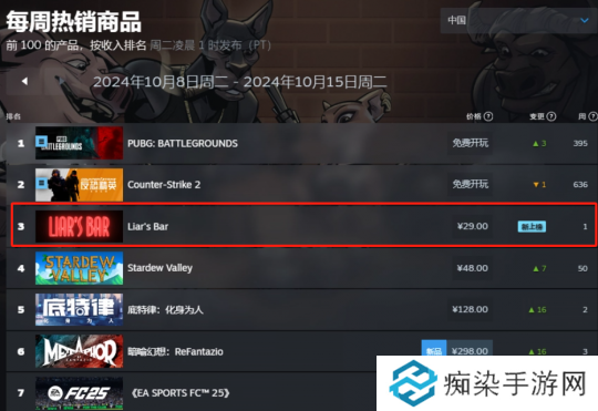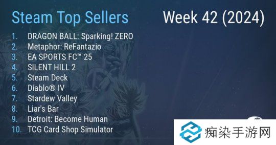 2024年第42周Steam周销榜TOP10 :