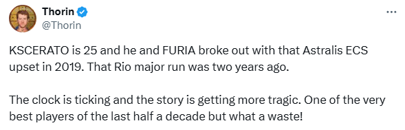 FaZe止步上海Major十六强。赛后,英国知名电竞记者Thorin在个人社交媒体账号上谈到了对巴西选手KSCERATO的看法。
