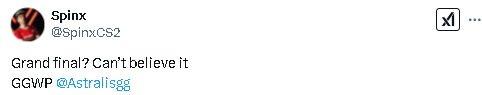 Spinx:总决赛?真不敢相信。GGWP Astralis。