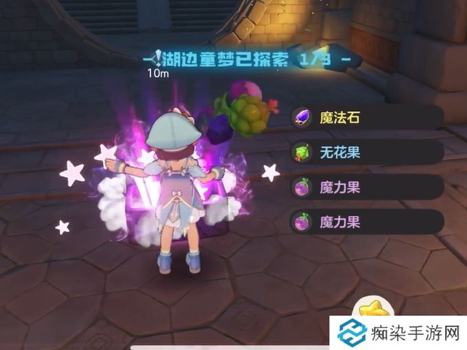 这些红星星共有三个,代表了三处地点是需要解锁的,玩家按照星星的指示就能来到解密地点,其中一个解密地点只需要放上精灵就能解锁,而第二个个机关就是需要使用星星魔法将地上的封印直接破除就能完成。