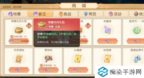 1、建议小氪玩家不要使用绑玉和非绑玉购买神兽,直接将把日常获得的资源卖掉即可。