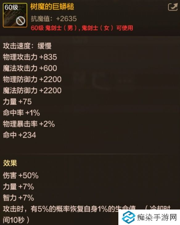 树魔的巨蟒槌是DNF手游中的鬼剑士职业60级史诗钝器,能够在攻击时恢复自身血量,并概率释放树魔的地刺,同时还有增加自身防御力的基础属性,接下来就让我们一起了解一下树魔的巨蟒槌怎么样吧。