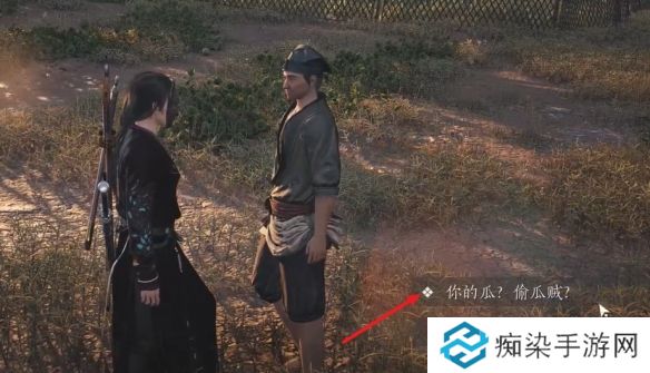5、最后在对话框中选择你的瓜?偷瓜贼?,完成对话剧情即可完成这个任务。