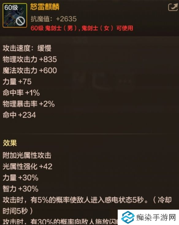 DNF手游怒雷麒麟图鉴-60级史诗钝器怒雷麒麟属性效果