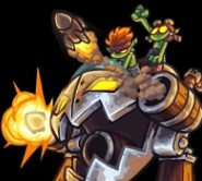 设定上他是一位哥布林绿皮战争机器,技能上,他的一技能发动后会释放矮人无人机辅助攻击,二技能发动后会释放减速黑油减速敌人,三技能是一个砸地技,发动后他会对地面发动攻击,四技能发动后他会释放地雷攻击敌人,最后一个技能发动过后他会召唤哥布林飞艇攻击敌人。