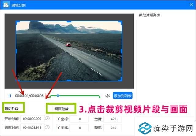 步骤三 上传好视频文件之后,接下来点击【编辑分割】,进入到片段剪切页面。我们可以对视频的长度进行剪切,也可以对视频的画面进行裁剪。编辑完成之后,点击【确定】即可返回到上一个页面。