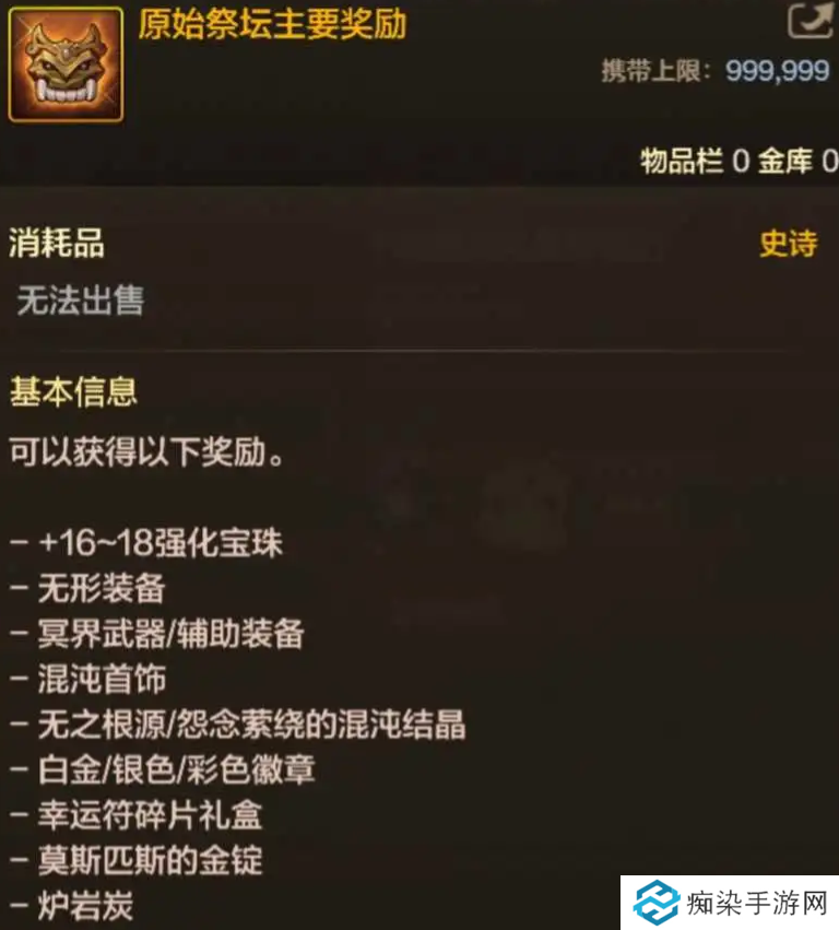 原始祭坛是全新的深渊地下城,地图由两个房间组成,每个房间需消耗2点疲劳值,入场条件为消耗20张新的深渊门票“秘密宝库通行证”。