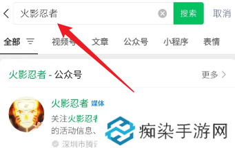 1、首先进入微信,然后搜索框输入【火影忍者】。