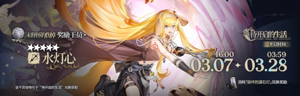 兑换说明:活动期间,玩家可通过活动关卡作战及【未释怀的伤悼】获取「损坏的源石灯」,消耗「损坏的源石灯」来交易【待开启的生活】中物品