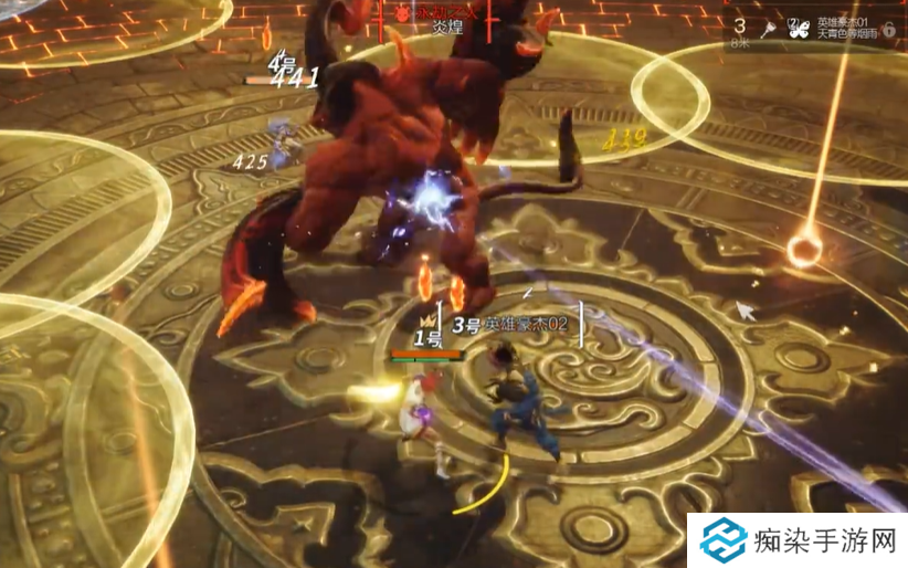 当第一阶段结束,炎煌就会开始移动了,时间也不会被冻结了,这个阶段玩家们就可以全力输出了,不过这个阶段需要小心全面屏幕的火力冲击,在界面上会出现一个挡的提示,当这个挡字倒计时结束,就意味着需要格挡输出,否则容易被aoe直接杀死。