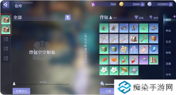 6、淘汰的背包可以装配到个人仓库中,属性依然会生效,最大化背包的收益。