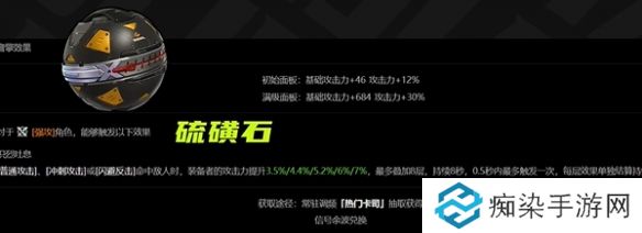 1、硫磺石副词条是攻击力百分比,可直接为伊芙琳提供输出伤害。