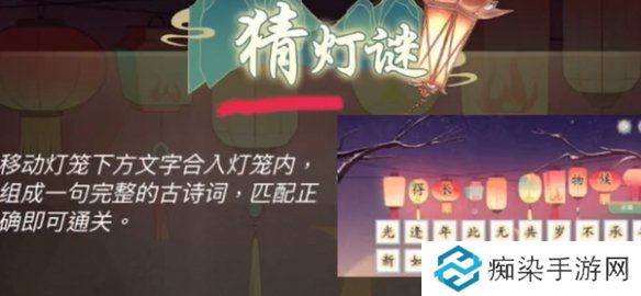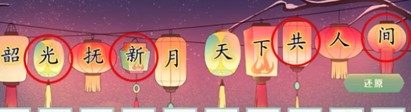2、需要玩家们将下面的字移到上面的灯笼里组成完成的句子。